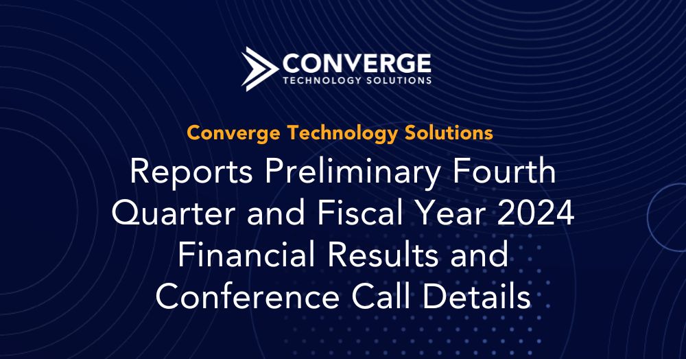 February 10, 2025 – TORONTO (Ontario) and GATINEAU (Québec) – Converge Technology Solutions Corp. (“Converge” or “the Company”) (TSX:CTS) (FSE:0ZB) (OTCQX:CTSDF), today announced preliminary results for the fourth quarter (“Q4-2024”) and fiscal year ended December 31, 2024. The Company will hold a conference call to discuss complete financial results for Q4-2024 and fiscal year ended December 31, 2024 on Thursday, March 6th, 2025 at 8:00am EST. The call will be hosted by the Converge leadership team, followed by a question-and-answer period. Converge will report its financial results in the morning prior to the call.